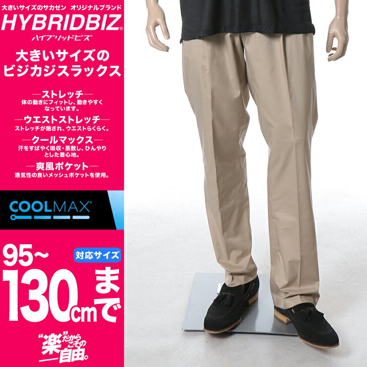 大きいサイズ メンズ B&T CLUB HYBRIDBIZ ウォッシャブル パンツ[95 100 105 110 115 120 130 140 cm]サカゼン ビッグサイズ ビジカジ ボトムス 防シワ(春夏 ビジネスパンツ チノパン ツータック ストレッチ チノパンツ ストレートパンツ))