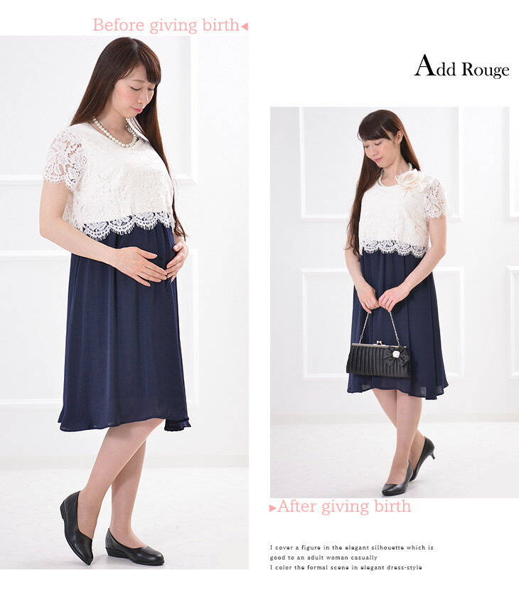 【サイズ】M/L 【カラー】カーキ/ネイビー/サーモンピンク 【マタニティ分類 [ワンピース][フォーマルワンピース][マタニティ] ▼シフォンスカートで体型カバー。