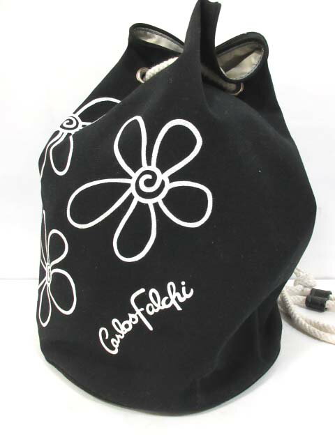 carlos falchi ドラム 巾着 バッグ 黒 プリント花 レディース 【中古】【ベクトル 古着】 180104 ブランド古着ベクトルプレミアム店