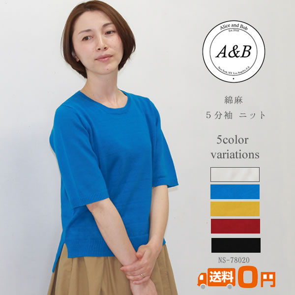 【スタート1時間30%OFFSALE】リネンコットンニット クルーネックニット 麻55% 綿45% 大人 オシャレ レディース ファッション 【ゆうパケット便送料無料】 【アリスアンドボブ】