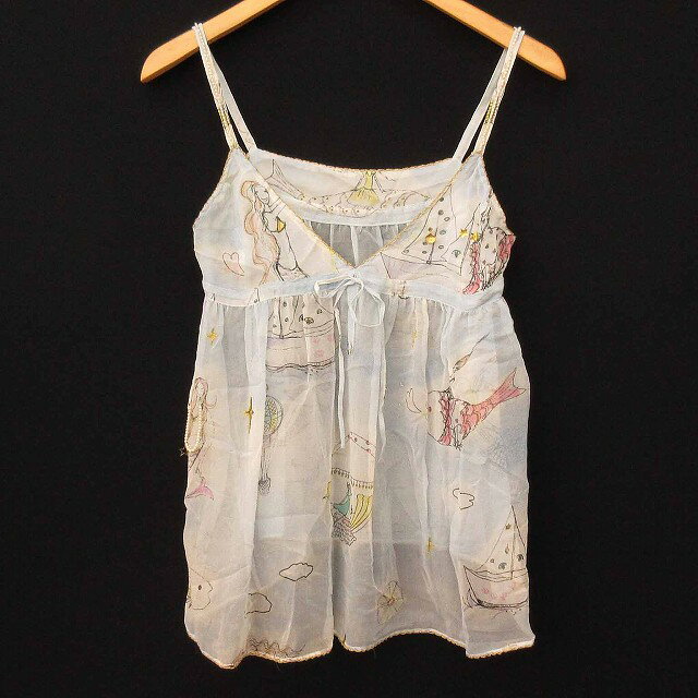 ツモリチサト TSUMORI CHISATO キャミソール シフォン ビーズ プリント シルク100% 水色系 ライトブルー 2 0511 レディース 【中古】【ベクトル 古着】 180512 ブランド古着ベクトルプレミアム店