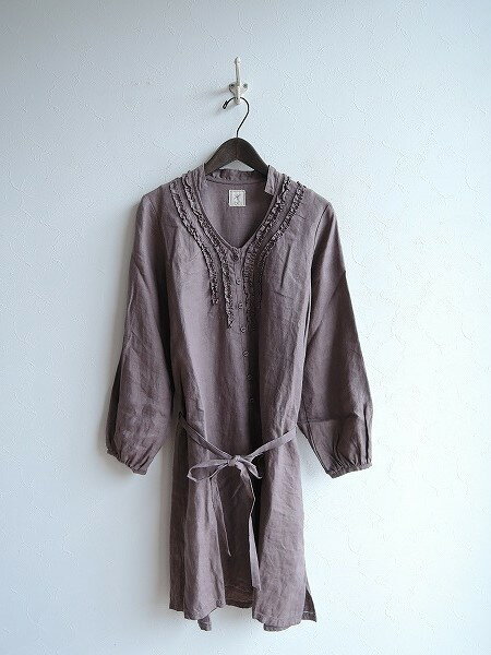 ハグオーワー Hug O War フリルリボンリネンチュニックワンピース -【中古】【92F81】【高価買取中】【店頭受取対応商品】