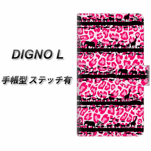 DIGNO L KYV36U 手帳型スマホケース 【ステッチタイプ】【AG875 サバンナアニマルヒョウ柄(ピンク×黒)】(ディグノL KYV36U/KYV36U/スマホケース/手帳式)