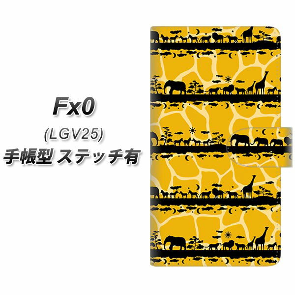 au Fx0 LGL25 手帳型スマホケース【ステッチタイプ】【AG873 サバンナアニマルキリン柄(黄色×黒)】(FirefoxOS/LGL25/スマホケース/手帳式)/レザー/ケース / カバー